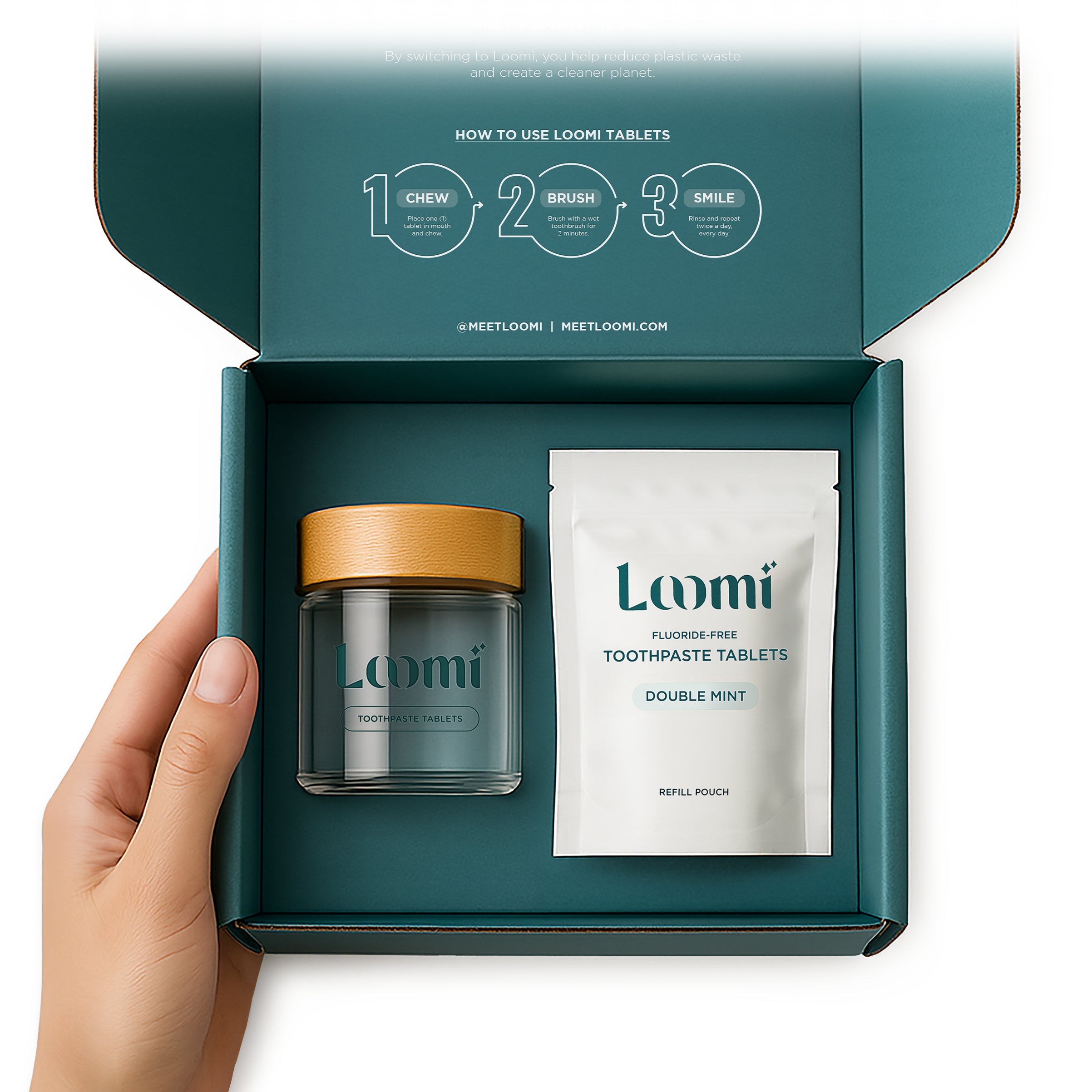 At the heart of it all are our toothpaste tablets: dentist-formulated, perfectly portioned, and free from plastic, harsh chemicals, and unnecessary fillers. They deliver a powerful, mess-free clean that’s gentle on your smile and light on the planet—making better oral care as easy as chew, brush, smile.